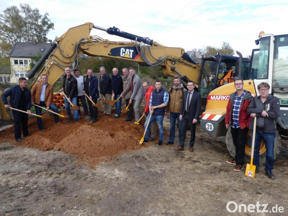 Zum symbolkräftigen ersten Spatenstich hatten sich am Montag die drei Bürgermeister mit Stadträten, Harald Wagner vom städtischen Bauamt, Michael Wagner mit Kollegen vom Planungsbüro und Projektleiter Michael Feit mit Kollegen der Firma Markgraf im Schatten eines großen Baggers eingefunden. Mit Freude und Begeisterung setzten sie ihre Spaten ein und ließen Aushubmaterial "fliegen".