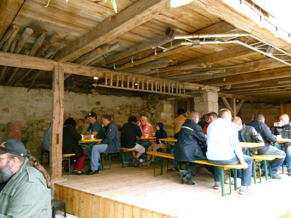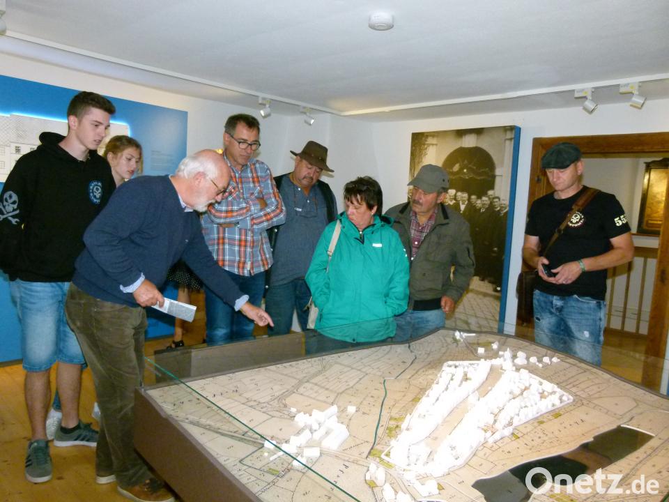 Zentraler Treffpunkt aller Oldtimerfahrer war das Taubnschusterhaus. Nicht nur Gasträume und der bestuhlte Außenbereich füllten sich zusehends. Ein reichhaltiges Kuchenbuffet und Getränke mit Zoigl fanden regen Zuspruch. Großes Interesse weckten die Ausstellungsräume im Oberschoss. Neben Dokumenten zur Eschenbacher Braugeschichte galt das besondere Interesse der Gäste dem Eschenbacher Stadtmodell, vor dem Karlheinz Keck unentwegt Auskünfte erteilte und sich den Fragen der erstaunten Besucher stellte. Sie sahen in dem Modell ein Alleinstellungsmerkmal mit hoher Aussagekraft zu örtlicher Geschichte und Handwerkstradition. Im neuen Mehrzwecksaal war Albert Furtner gefragter Ansprechpartner zur aktuellen Ausstellung über ehemalige Gaststätten in und um Eschenbach.