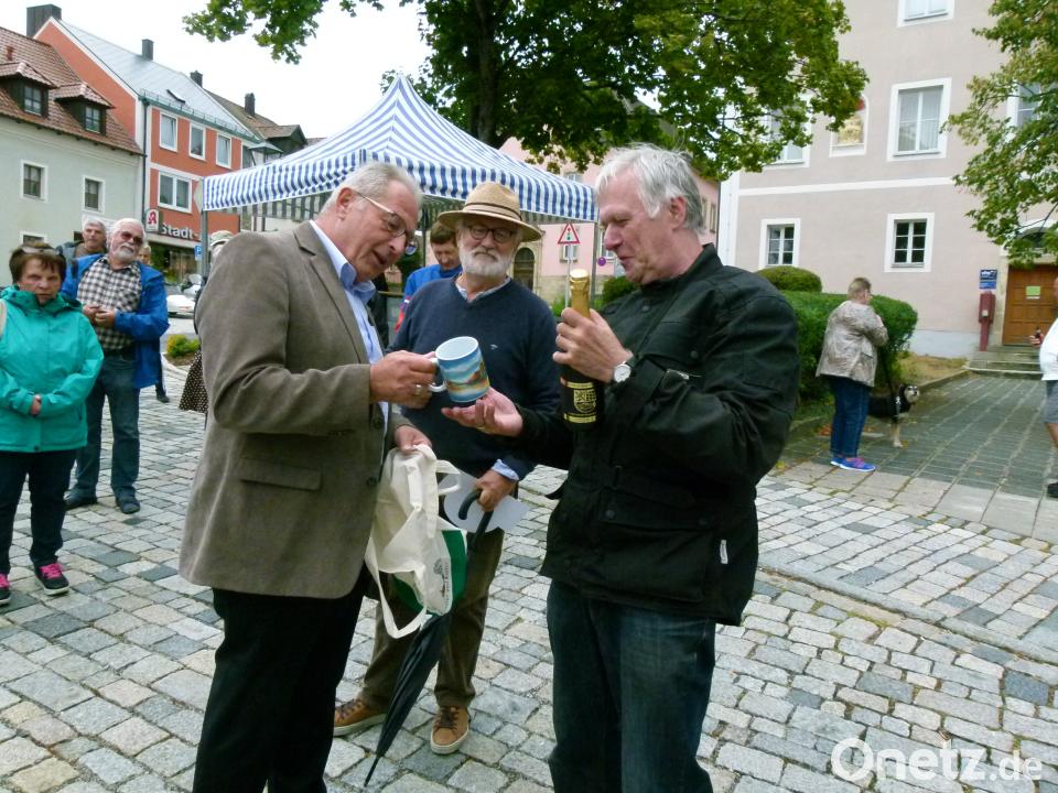 (rn) Vor dem Landratsamt hieß Karlheinz Keck KEM-Vorsitzenden Elmar Högl, Piloten und Co-Piloten der nostalgischen Vehikel willkommen und kündigte als Vorsitzender des gastgebenden Vereins ein vielseitiges Willkommensprogramm an. Dritter Bürgermeister Klaus Lehl dankte Feuerwehr, Polizei und Bauhof für die Unterstützung der Veranstaltung in Eschenbach. Högl war sichtlich überrascht, als im Lehl Eschenbach-Sekt und die Eschenbacher Künstlertasse überreichte.