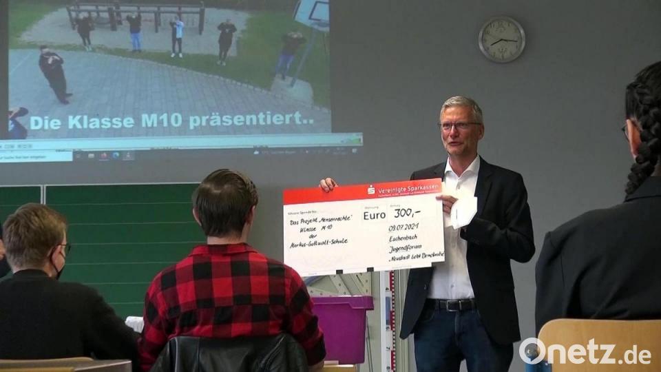 „Leider konnte dieser Wettbewerb coronabedingt so nicht stattfinden“, informierte der Schulleiter der Markus-Gottwalt-Schule, Wolfgang Bodensteiner. Aber die Schüler der M10 hatten sich von Klassenleiterin Nicole Gleißner inspirieren lassen, trotzdem einen Videoclip zu produzieren und diesen beim Kreisjugendring einzureichen. Dort überzeugte der Beitrag aus Eschenbach die Verantwortlichen derart, dass Arno Speiser als Vertreter zu einer Spendenübergabe an die Schule kam.