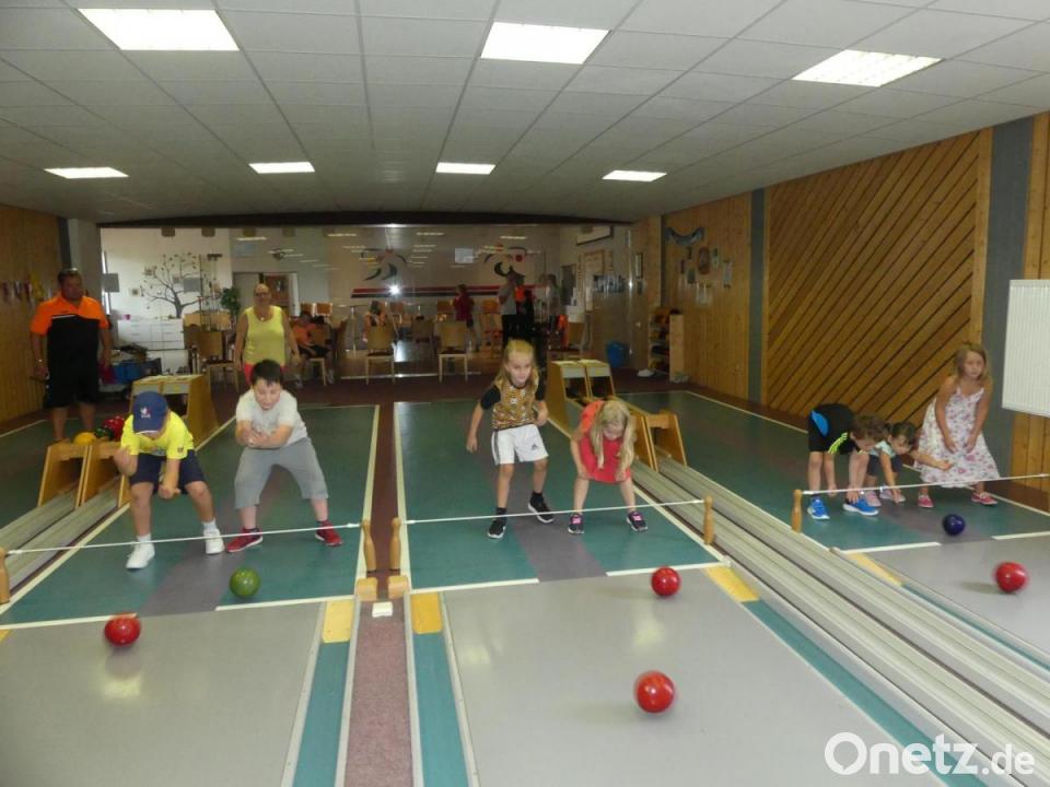 Das Ferienprogramm, das das Jugendforum mit Unterstützung der Vereine anbietet, zeichnet sich durch seine Vielfältigkeit aus. Das jüngste Angebot war Kegeln, das bis ins 18. Jahrhundert ausnahmelos im Freien gespielt wurde und auf keinem Jahrmarkt und keiner größeren Hochzeit fehlte. Die Eschenbacher Schulkinder lockte jedoch die Kegelanlage im Sportheim. Gisela Kirchmann und Stefan Reifenberger mit Ehefrau und Kindern, Aktive der SCE-Sparte Kegeln, hießen eine muntere und erwartungsfrohe Kinderschar willkommen. Den jungen Keglern war daran gelegen, die ihnen je nach Alter zustehende Kugel mit einer Hand oder auch mit beiden Händen sicher aufzusetzen. Sie erkannten bald, dass eine gewisse Schubkraft erforderlich ist, damit die Kugel auf ihrem Weg zu den Kegeln nicht „verhungert“. Die Freude der Kinder steigerte sich mit Zunahme der Zahl der gefallenen Kegel. Schließlich ertönten Hurra-Rufe: Zum ersten Mal gratulierte Reifenberger zu „Alle Neune“. Historisch wurde Gisela Kirchmann, als sie an das Kegeln im 15. Jahrhundert erinnerte, eine Zeit, in dem die meisten Spiele als Gotteslästerung galten, und trotzdem Kegeln auch in Klöstern praktiziert wurde. Es wurde schlicht als „Heidentöten“ bezeichnet und die aufgestellten kurzen Holzsäulen wurden von den Mönchen als heidnische Götter und Dämonen behandelt, die sie mit Steinen oder Holzkugeln umwarfen. Auf der Vier-Bahnen-Anlage im Sportheim nutzten die Kinder gerne die Möglichkeit des Kegelns im Duo. Leicht versetzt rollten dann die beiden Kugeln ihrem Ziel entgegen. Die Folge waren variantenreiche Kegelstellungen. Nach nahezu 150 Minuten Kegelspaß ergötzten sich die neuen „Kegelspezialisten“ an Süßigkeiten und Getränken.
