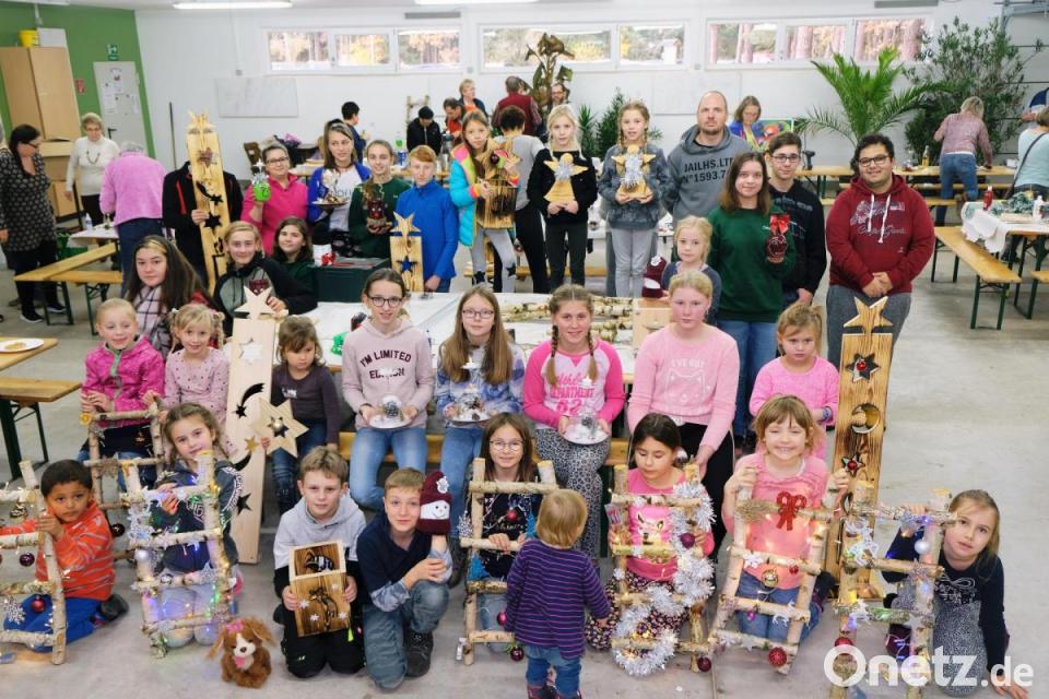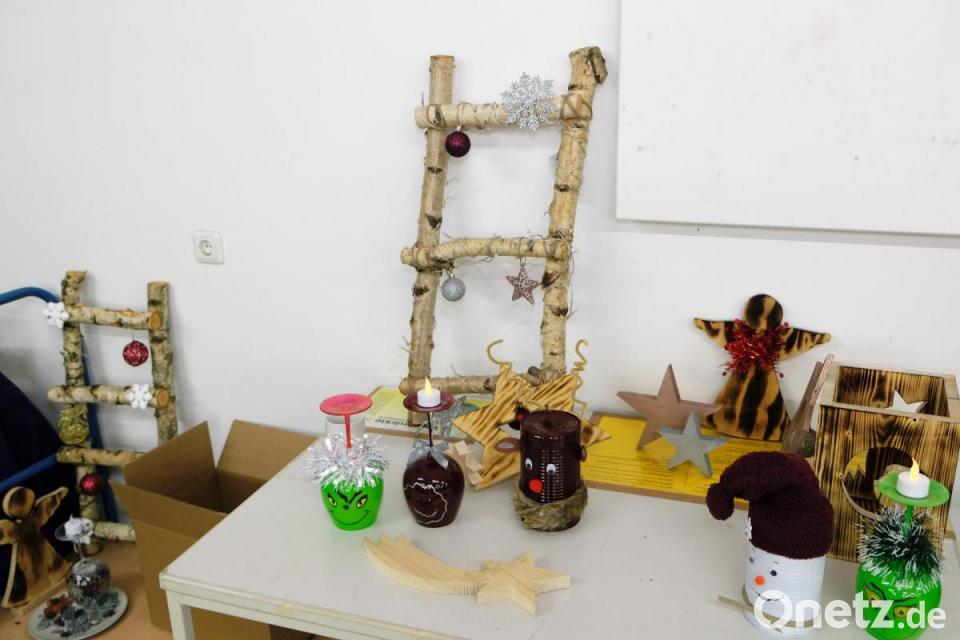 Blinkende Deko-Birkenleitern, Holz-Laternen und Holz-Engel, Deko-Sterne mit Glaskugeln, Adventsteller, prächtige Schneemänner, bunt bemalte Nikoläuse. Es entstand eine Adventsgeschenke-Galerie für viele Geschmäcker. Von den großen Tischen leuchteten die bunten Schätze und die kleinen Künstlerinnen und Künstler strahlten mit. Viele Muttis unterstützten den abwechslungsreichen Kreativnachmittag mit Kuchenspenden.