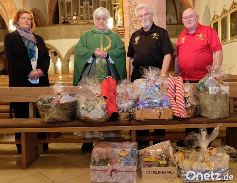 Armut kennt keine Saison. Mit diesem Bewusstsein sammelten die „Knights of Columbus“ der US-Garnison Bavaria in Grafenwöhr für die Partnergemeinde Eschenbach. „In der Gegend, in der wir arbeiten und leben, gibt es auch Menschen in Not“, stellte James P. Federline bei der Übergabe der Sachspenden fest. Die "Knights of Columbus" (Columbus-Ritter) machten es sich mit dem „Kolumbus-Ritterrat St. Maximilian Kolbe Grafenwöhr“ zur Aufgabe, den Personenkreis Bedürftiger in der Katholischen Pfarrgemeinde Eschenbach brüderlich zu unterstützen, erläuterten Federline und sein Knight-College David W. Brown den Gläubigen am Samstagabend in der Vorabendmesse. Insgesamt waren es elf Geschenkkörbe im Einzelwert zwischen 25 Euro und 125 Euro, die aufgereiht vor der ersten Kirchenbank standen. Stadtpfarrer Thomas Jeschner und Pfarrgemeinderatssprecherin Anja Hubmann dankten im Namen der Pfarrgemeinde für die Spende und versicherten die Weitergabe „an Familien, die es brauchen“.