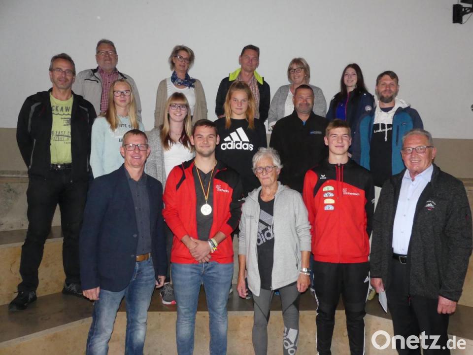 Zur „Ehrensitzung“ im geselligen Kreis hatten sich gesellt: dritter Bürgermeister Klaus Lehl, SCE-Vorsitzender Thomas Mikolei, SCE-Spartenleiterin Leichtathletik (LA) Hannelore Ott, LA-Schülertrainer Dominik Klüter, die Mitarbeiter im LA-Team Simon Melzner, Jasmin Reindl und Achim Kaufmann, Pöllmanns Eltern sowie die Aktiven Milena Gebhardt und Ronja Melzner.