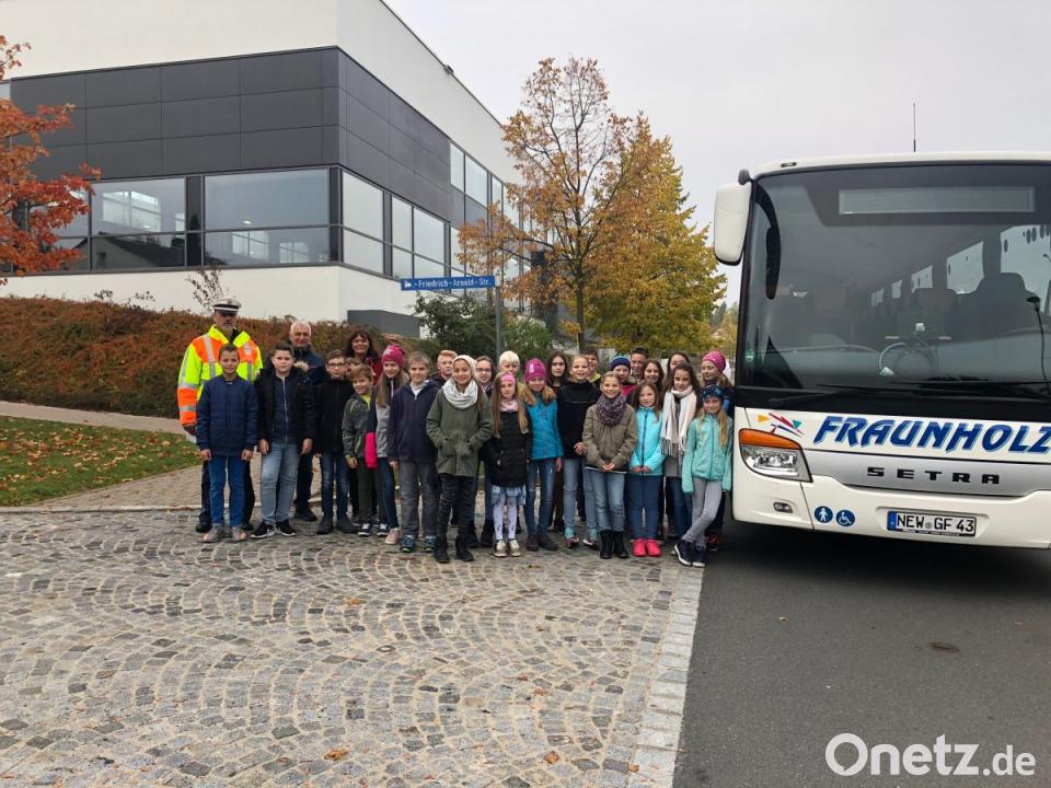 Deshalb folgte ein praktischer Teil an der Bushaltestelle. Dort verdeutlichte Simon gemeinsam mit Busfahrer Klaus Fiebig vom Busunternehmen Fraunholz viele Details rund um den Bus. Dabei ging es um die Fragen, wo sich die toten Winkel befinden und welche Spur die Hinterräder des Busses beim Fahren um die Kurve einschlagen. Eine Demonstration – ein Krautkopf kam unter die Räder des Busses und wurde völlig zerquetscht – sensibilisierte die Schüler für das Gewicht des Fahrzeugs.
