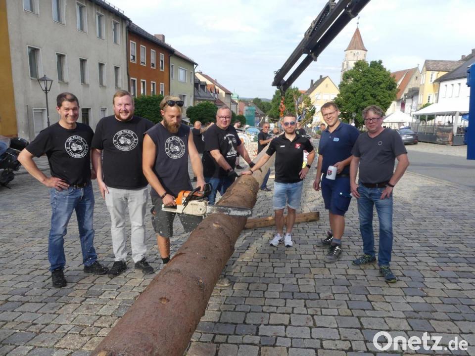 Der Maibaum 2022 ist Geschichte. Am Donnerstag hob ihn Michael Schmid mit einer starken Mannschaft der Pilots aus der Verankerung. Auf dem Marienplatz zerlegten ihn die Pilots und bauten die Vereinstafeln ab. Letztmals war die Aktion Maibaum mit einer Versteigerung verbunden. Wegen Corona gab es 2020 und 2021 kein Maibaumfest sondern lediglich Ein-Meter-Stücke. Deren Versteigerung brachten 2020 dem Kindergarten 2.000 Euro und 2021 dem Waldkindergarten gar 3.000 Euro an Spenden ein. Die für dieses Jahr letztmalig angekündigte Versteigerung ergab zugunsten der Jugendarbeit des SC 1.000 Euro. Für 300 Euro ging der Stamm wie im Vorjahr an Michael Schmid. SCE-Chef Michael Brüchner dankte Schmid mit einem SCE-Krug. Der wiederum lud die Pilots-Mannschaft zum Umtrunk ein.