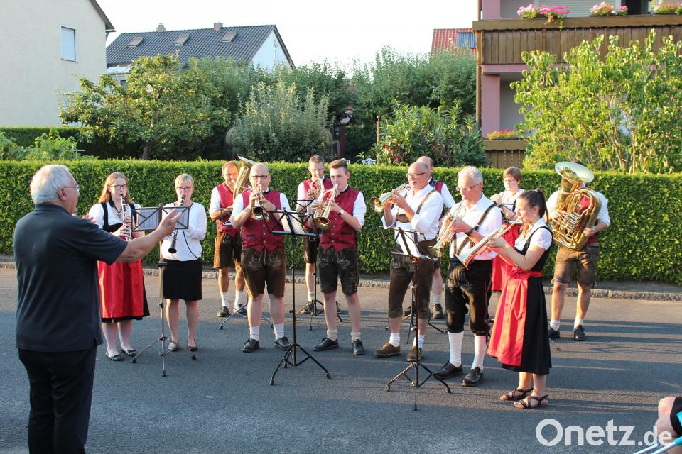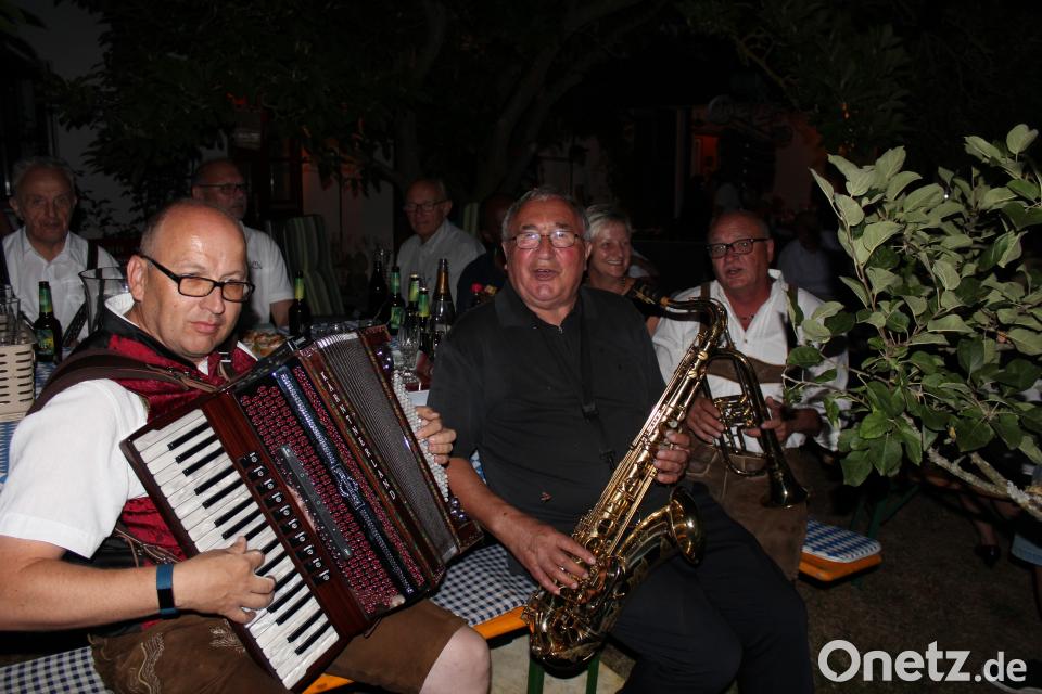 Das Straßenkonzert - Zuhörer waren auch ein großer Kreis von Freunden und Nachbarn - ging über in eine Serenade mit Gaumengenüssen im Kohl'schen Garten. Dem Jubilar ging das Herz über bei den Klängen der Stadtkapelle, die mit Magier Marius den Abend verzauberte. Spontan holte der 80-Jährige als Saxofonist der Big Band sein Instrument und erfreute zusammen mit Ludwig und Reinhold die Feiernden.