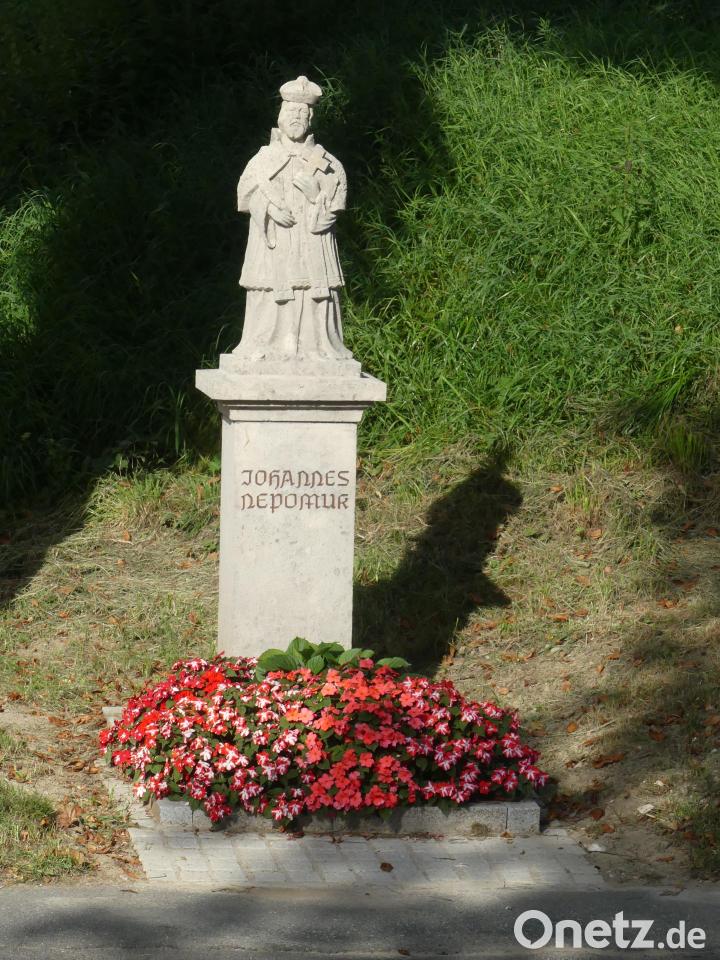 Den Auftrag dazu hatte die Firma Steinrestaurierung Georg Doreth aus Neustadt am Kulm erhalten. Die Arbeiten am Fundament und für den Blumenschmuck übernahm der Bauhof. Die Statue erinnert an den böhmischen Priester Johannes Nepomuk, der 1393 als Bestrafung in Prag von der Karlsbrücke in die Moldau gestürzt und ertränkt wurde. Er soll es abgelehnt haben, König Wenzel das Beichtgeheimnis seiner Gemahlin Sophia zu verraten. Als Brückenheiliger steht seine Statue auf vielen Brücken Europas.