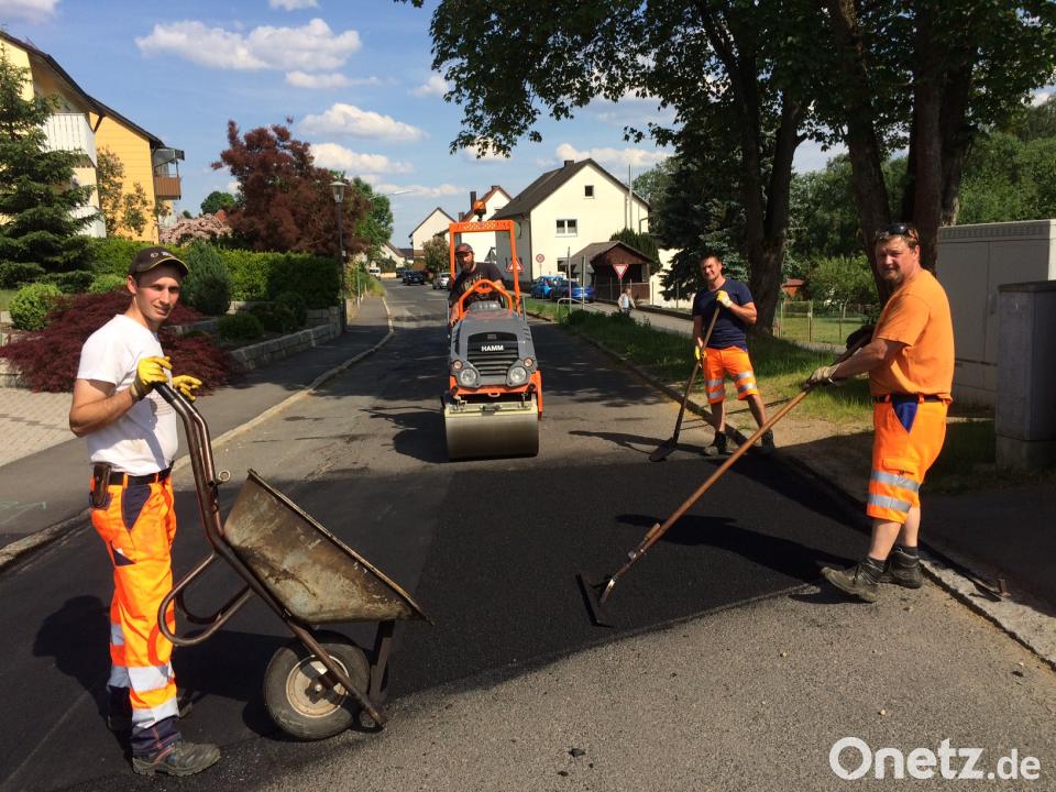 Bauhofs mit der Ausbesserung des Fahrbahnbelags beschäftigt und leistet dabei