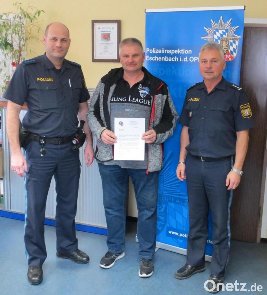 Robert Tafelmeyer aus Kaltenbrunn beobachtete im November 2019 eine Unfallflucht auf dem Parkplatz eines Grafenwöhrer Supermarktes. Eine zunächst unbekannte Frau hatte ein geparktes Auto angefahren und sich dann unerlaubt vom Unfallort entfernt. Tafelmeyer dagegen notierte sich das Kennzeichen des Autos und verständigte die Polizei. Seiner Aufmerksamkeit war es zu verdanken, dass die Unfallverursacherin schließlich ermittelt werden konnte, schreibt die Polizei in einer Pressemitteilung. Erster Polizeihauptkommissar und Leiter der Polizeiinspektion Eschenbach,Werner Stopfer, sprach dem Zeugen einen Dank für sein vorbildliches Verhalten aus. Dabei betonte Stopfer, wie wichtig es für die Polizei sei, Hinweise und Beobachtungen aus der Bevölkerung zu erhalten. Durch sein Handeln habe Tafelmeyer echten Bürgersinn bewiesen und die Aufklärung einer Straftat ermöglicht. Stopfer überreichte den Kaltenbrunner für seine Zivilcourage ein Dankschreiben des Polizeipräsidenten sowie einen Geldbetrag.