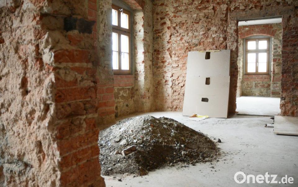 Damit das neue Kapitel im Buch der Alten Fronveste aufgeschlagen werden kann, war und ist noch viel Arbeit notwendig. Nicht nur bröckelige Mauern, ein maroder Dachstuhl und Feuchtigkeit in den Räumen erschweren die Sanierung, das Gebäude steht auch noch unter Denkmalschutz. Besondere Auflagen müssen eingehalten werden. "Das Einzige, das nicht mehr so umgesetzt werden konnte wie früher, ist das Sichtmauerwerk", berichtet der Grafenwöhrer. Damit die neuen Außenwände den alten optisch trotzdem ähneln, malte ein Maler Hunderte graue Striche auf den weißen Putz und ahmte so das Mauerwerk nach.