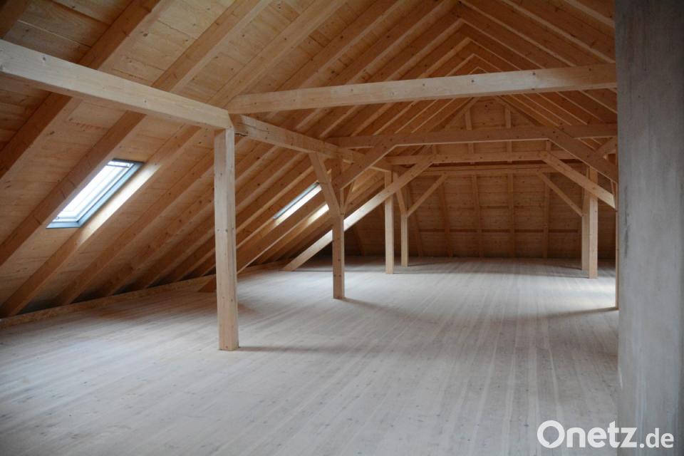 Innen möchte Stopfer ein besonders schönes Stück Sandsteinwand an der Treppe erhalten und den Putz dort außen herum anbringen lassen. Urig und modern sollen sich abwechseln. Modern wird es zum Beispiel, wenn der Verbindungsgang zwischen Fronveste und jetziger Dienststelle entsteht. Vom ersten Stock aus verbindet er die beiden Gebäude, damit die Beamten schnell zu den neuen Verhörräumen gelangen können, sollte es dort mal Ärger geben. Einen detaillierten Plan zu dem sieben Meter langen Übergang gibt es aber noch nicht. Der Dachstuhl hingegen ist schon fertig. Er musste komplett erneuert werden - der Holzwurm hatte an ihm genagt. "Der Dachstuhl wurde wieder so hingestellt wie er war", erzählt Stopfer. Der Duft von frischem Holz durchströmt den großen Raum. Dort sollen die Umkleiden entstehen. In den anderen beiden Stockwerken sind Verhörzimmer, Besprechungsräume, Büros und für das Übergangsjahr auch die Wache geplant. Die beiden Zellen bleiben aber im Hauptgebäude und ziehen nicht mit ins alte Gefängnis um, in dem dann endlich wieder Leben einkehrt.