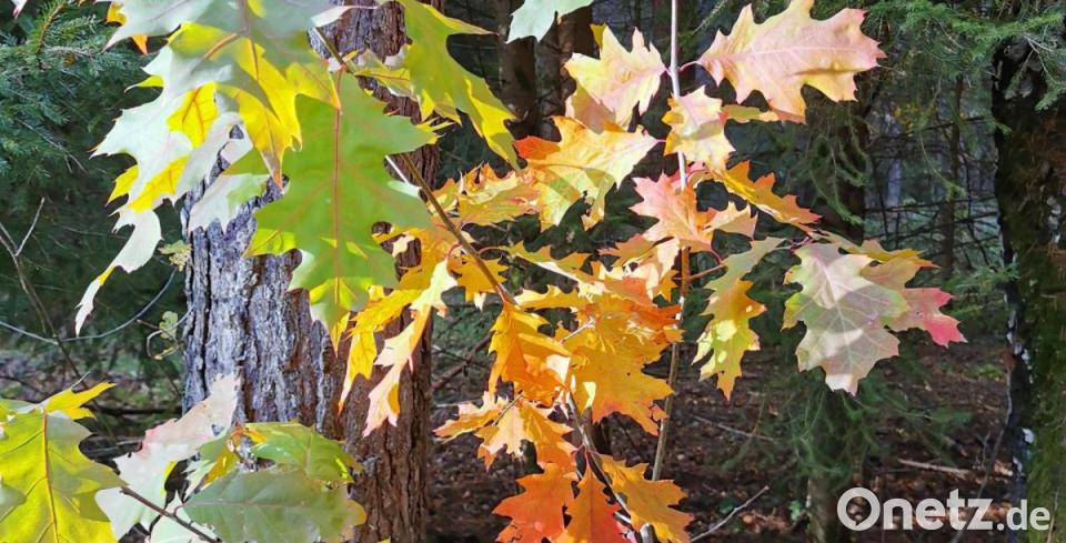 Roteiche in herbstlichen „Ampelfarben“ am Rußweiherweg