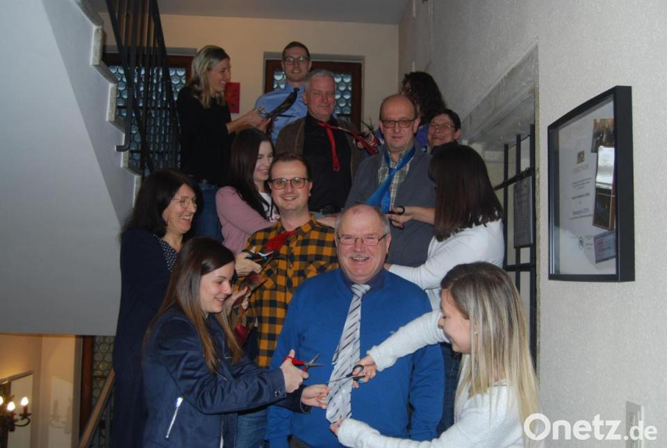 Mit Scheren bewaffnet gelang es ihnen am Donnerstag, die männlichen Kollegen zu "zähmen". Eingepfercht am Zugang zum Dachgeschoss hatten Bürgermeister & Co keine Chance zum Entkommen, als der Schlachtruf „Schlips ab“ erschallte. Den Herren der Schöpfung gelang es nur mit einer Sektdusche, die Faschingsbegeisterung der VG-Mitarbeiterinnen abzukühlen. Als Zugabe servierten sie noch Krapfen.