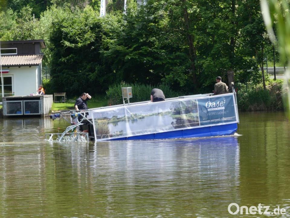 Die Zukunft des Rußweihers liegt möglicherweise im Schlammlöser „Schlixx-Plus“, mit dem an Bord die Firmenjacht „Oase“ des Hofer Unternehmens Söll in See stach. Ziel ist es auch heuer, durch Injizieren des hochwirksamen mineral-biologischen Produkts die Schlammschicht im Rußweiher zu minimieren.