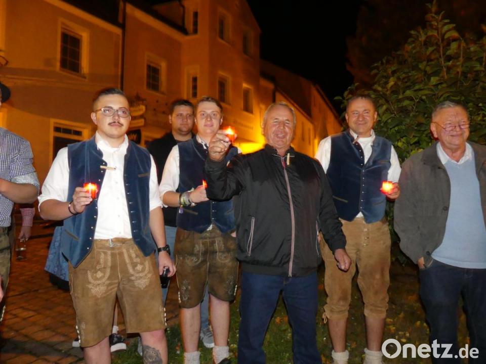 Dann war es an Fritz Gradl, ein „Trauerlied“ anzustimmen. Sein wortgewaltiger Gesang lockte sogar Zuhörer aus umliegendern Häusern an. Bald schmückten unzählige Grablichter die Ruhestätte der Kirwa, an der Wohlrab für September 2020 eine fröhliche Auferstehung versprach. Nach dem "Feierabendlied" der Musiker rief er zum „Leichenschmaus“ auf - damit war alle Trauer vergessen.