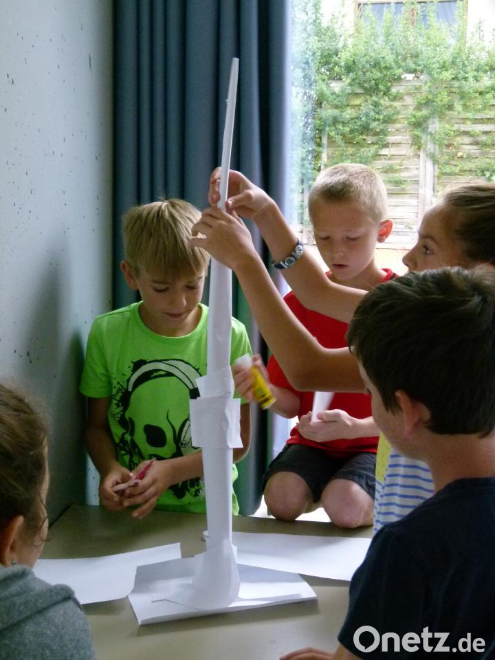 Zum Thema "Zusammenarbeit" stellte sie den Mädchen und Buben auch gleich eine "Aufgabe und Übung" - in maximal zehn Minuten einen möglichst hohen Turm bauen. Gemeinsam sollten sie eine Lösung finden. Und das gelang ihnen auch. Rübe-Hitzinger bescheinigte den Schülern "unterschiedliche, sehr kreative Lösungen, an denen Architekten ihre wahre Freude hätten".