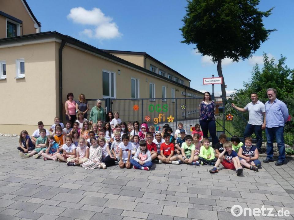 Für eine optische Aufwertung des Tores neben der Turnhalle der Markus-Gottwalt-Schule legten sich die Mädchen und Buben der Offenen Ganztagsschule im Rahmen eines Corona-Projekts ins Zeug. Sie schmückten das Gitter mit bunten Blumen- und Schneckenmotiven. Die Idee dafür kam von gfi-Mitarbeiterin Angelika Trummer. Mit Sperrholz und unter Anleitung schufen die jungen „Künstler“ mit Stichsäge, Acrylfarbe und Pinsel dekorative Motive, die mit Lack besprüht der Witterung Stand halten sollen. Bürgermeister Marcus Gradl und Rektor Wolfgang Bodensteiner überzeugten sich vom Ergebnis. Begeisterung bei den Grundschülern fand die spontane Eisspende des Bürgermeisters.