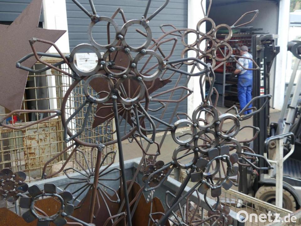 Staunen machte sich beim Gang durch die Schweißerei breit. Zu bewundern gab es unter anderem Feuerkörbe und Deko-Artikel. Besondere Kreativität bescheinigte der Werkstattmeister "seinem Ludwig" aus Gößenreuth, der den Besuchern seine Schmuckstücke für Gärten und Außenanlagen zeigte, die in der Regenbogen-Werkstatt Weiden verkauft werden.