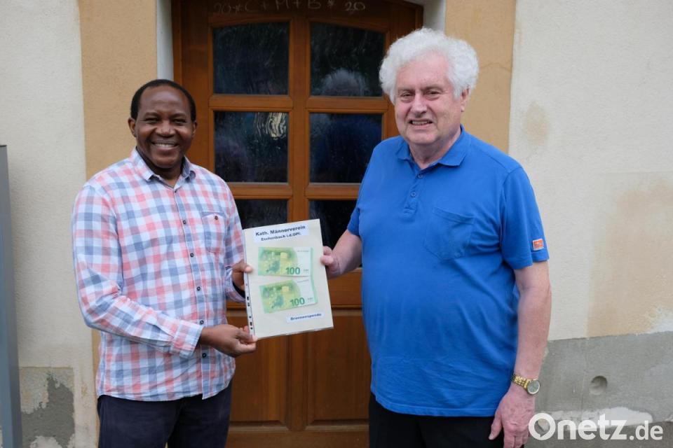 Sein Spendenaufruf erreichte auch den Katholischen Männerverein in Eschenbach. Mit einer „Brunnenspende“ will der Verein nun mithelfen, den Brunnen in Afrika zu bauen. Im Namen der Vereinsmitglieder überreichte Vorsitzender Manfred Neumann dem Vikar deshalb eine Bargeldspende in Höhe von 200 Euro. Spenden in bar oder auf das Konto der Katholischen Kirchenstiftung unter IBAN DE18 7539 0000 0007 1395 00 bei der Volksbank/Raiffeisenbank Nordoberpfalz sind weiter möglich.