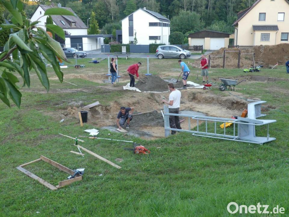 Bereits in das Auswahlverfahren der Spielgeräte hatten Hermann und Schäffler die Anwohner mit einbezogen. Nach der Lieferung der Gerätschaften packten die jungen Papas bei den Aufbauarbeiten kräftig mit an. Nach der Fertigstellung der Anlage stehen den Kindern zur Verfügung: viersitzige Wippe, Schaukel mit zwei Sitzen und einem Kletterseil, Multireck (drei Stangen in verschiedener Höhe), Rutsche, Slack-Master und Sandkasten. Gedacht haben die Jugendbeauftragten auch an eine Sitzgarnitur.