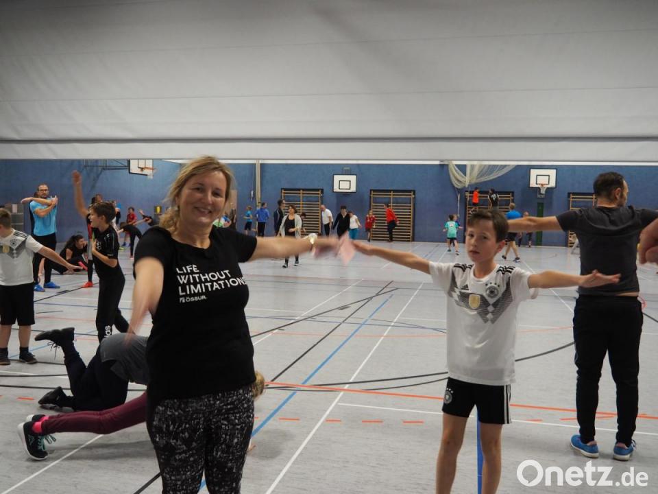 Nach der theoretischen Einführung war die Motivation aller Teilnehmer des Sportelternabends für den praktischen Teil groß. Nach dem Aufwärmen teilten sich Eltern und Kinder in Gruppen auf, um an verschiedenen Stationen ins Schwitzen zu kommen. Sie lernten dabei Übungen für ein „sanftes Krafttraining“ kennen, die auch ohne Geräte zu Hause nachgemacht werden können. Zudem wurden die Teilnehmer über die Prinzipien eines Ausdauertrainings aufgeklärt und konnten ihre eigene Ausdauer bei verschiedenen Spielen unter Beweis zu stellen.