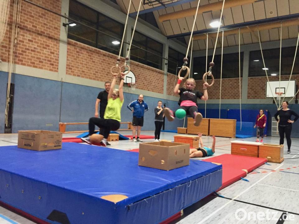 Nach einem auflockernden Aufwärmtraining verteilten sich die Eltern und Kinder in kleineren Gruppen in der Sporthalle. An verschiedenen Stationen durchliefen sie dann ein Sportprogramm und kamen dabei auch richtig ins Schwitzen. Sie lernten dabei unter anderem Übungen für ein "sanftes Krafttraining" kennen, die auch ohne Geräte in den heimischen vier Wänden nachgemacht werden können. Zudem wurden die Teilnehmer über die Prinzipien eines gesundheitsorientierten Ausdauertrainings aufgeklärt und erhielten die Möglichkeit, ihre eigene Ausdauerfähigkeit bei verschiedenen Spielen unter Beweis zu stellen.