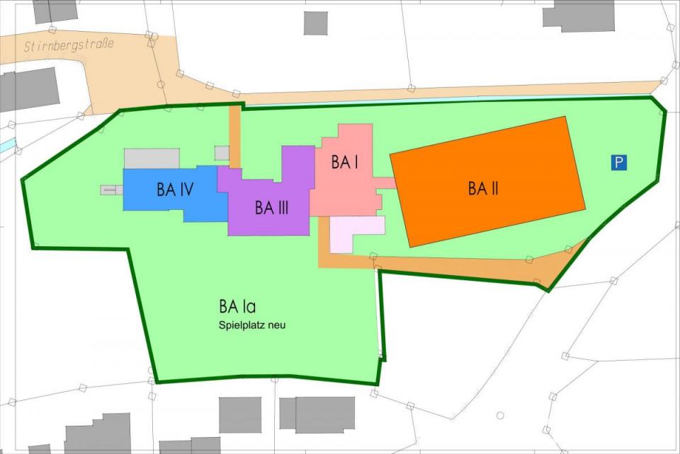 Der Bürgermeister verwies auf einen bereits mit Regierung und Jugendamt abgestimmten Plan mit temporärer Lösung zur Kinderbetreuung in Containerbauweise, um Zeit zur Neuausrichtung zu gewinnen. Diese – an einem separaten Standort im Bereich "Umgriff Bergkirche“ mit Kindergarten- und Krippengruppen – begründete er mit einer Auskunft des Jugendamts, wonach unter einer Leitung nur sieben Gruppen bestehen dürften und im Bereich Stirnberg Entfaltungsmöglichkeiten fehlten.