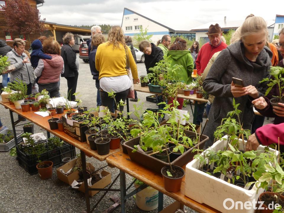 Zu einem geselligen Erlebnis wurde die Pflanzentauschbörse des Obst- und Gartenbauvereins. Die Freifläche und ein Teil der Gerätehalle der Firma Zehrer in der Gossenstraße wurden für unzählige Gartenfreunde zum Gesprächs-, Informations- und Pflanzenauswahlzentrum. Mehr als drei Stunden lang herrschte ein stetes Kommen und Gehen. Der Ansturm setzte bereits bald nach 12 Uhr ein. Schnäppchenjäger tummelten sich als Erste.