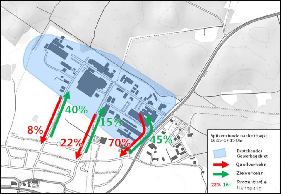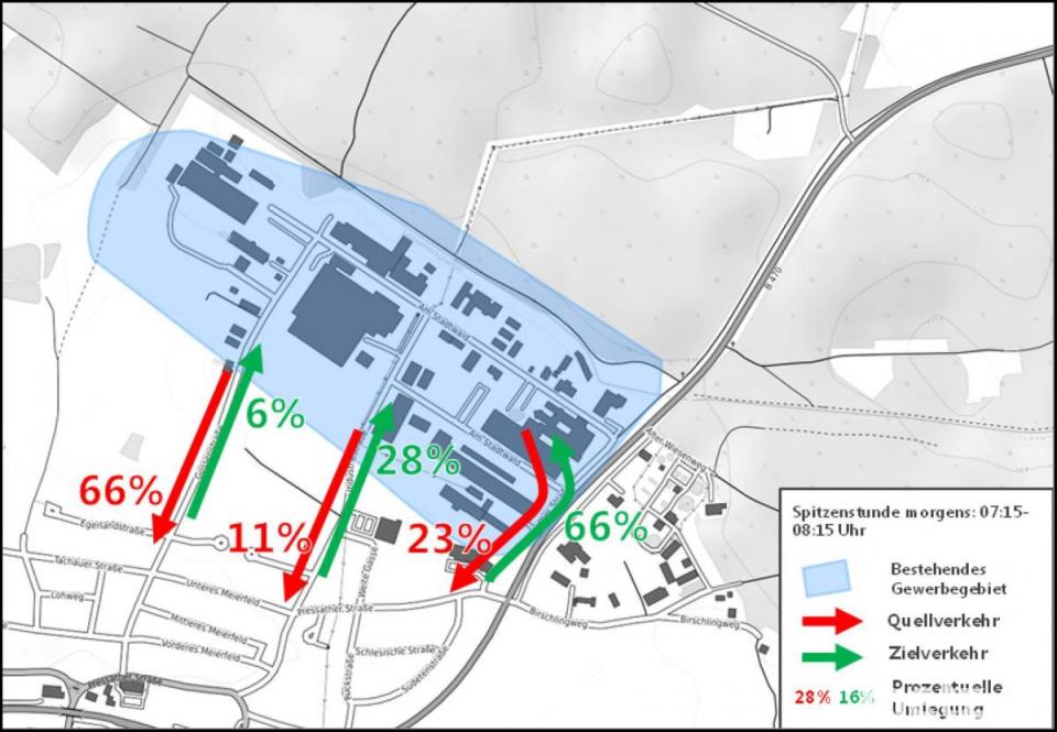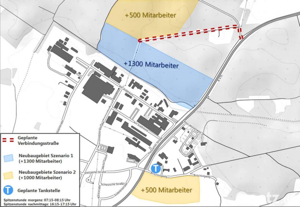 In einer Sondersitzung des Stadtrats stellte Patrick Schwenteck von der Planungs- und Betriebsberatungsgesellschaft Consult aus Nürnberg das Ergebnis der Untersuchung der Leistungsfähigkeit am "Knotenpunkt B470 / Gewerbegebiet Am Stadtwald" vor, mit dem im Auftrag der Stadt unter Berücksichtigung der Niederlassung weiterer Unternehmen Vorschläge zur Verbesserung der Verkehrsführung erbracht werden sollen. Zu den Erweiterungsstufen zählte der Planer die Erweiterung des Gewerbegebiets durch zwei Wachstumsszenarien: Erweiterung des vorhandenen Gewerbegebiets "Am Stadtwald" um bis zu 1800 Mitarbeiter (1300 in Stufe I, und zusätzlich 500 in Erweiterungsstufe II) und Gewerbeansiedlungen am Birschlingweg mit bis zu 500 Mitarbeitern. Darüber hinaus sollte der verkehrliche Einfluss einer Verbindungsstraße nördlich des Gewerbegebiets über die Hammermühlstraße überprüft werden.