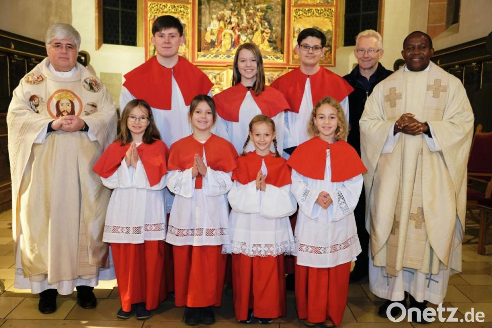 Am vorletzten Tag des alten Kirchenjahres freuten sich vier weitere Mädchen, in die tatendurstige Truppe des liturgischen Dienstes aufgenommen zu werden. Im gut besuchten Festgottesdienst freuten sich viele Gläubige und die Eltern der neuen Ministrantinnen mit. Schon in Rot und Weiß eingekleidet, zogen Klara Biersack, Maria Kraus, Fiona Seemann und Marie Seemann etwas aufgeregt, aber wohlbehütet durch erfahrene Minis zu festlichen Orgelklängen in St. Laurentius ein. Stadtpfarrer Thomas Jeschner nannte den Zeitpunkt einen Sahnetag und ein starkes Ausrufezeichen für die Gemeinschaft der Pfarrei.