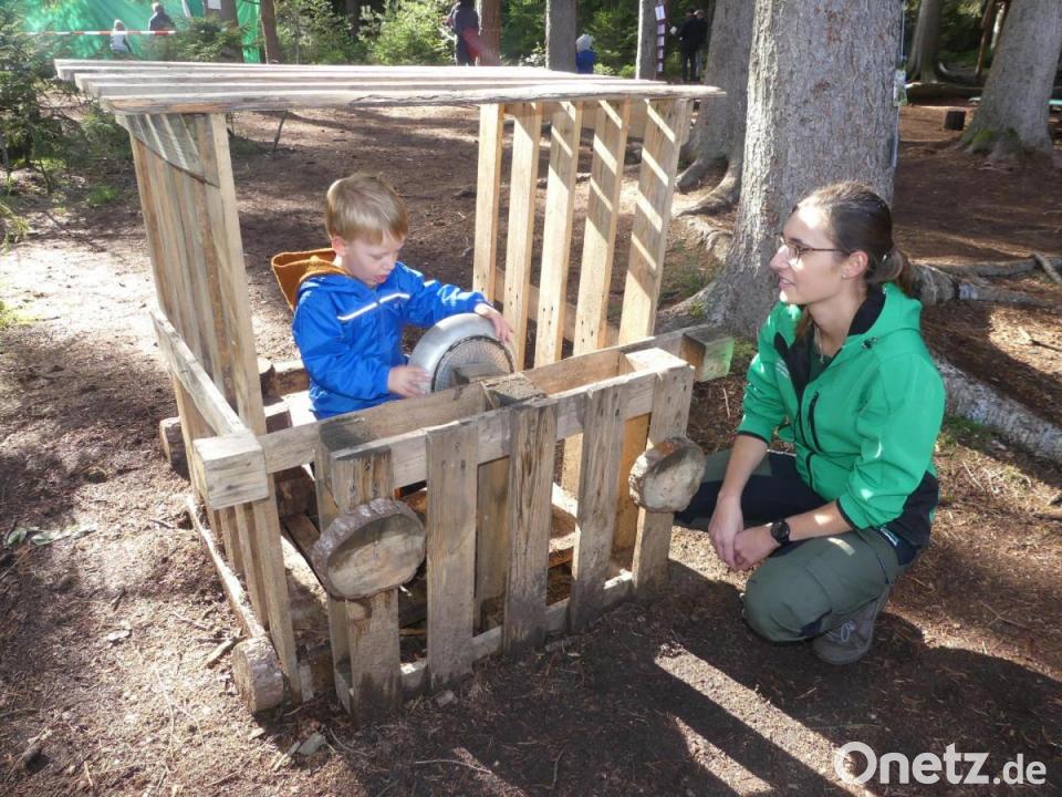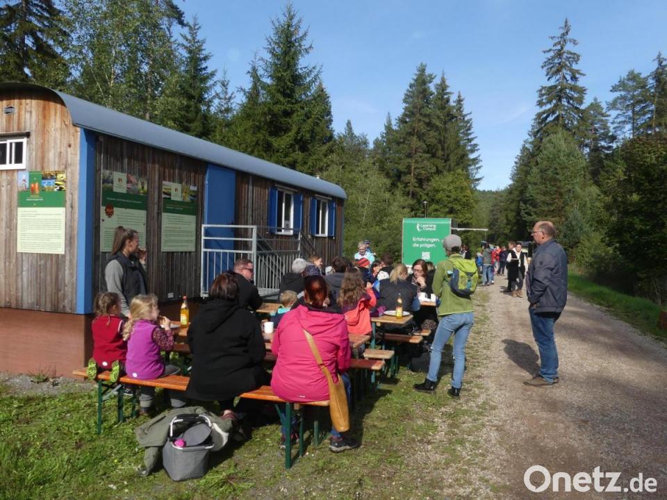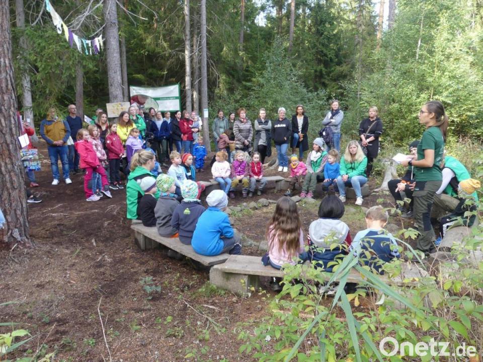 Es begann mit grünem Licht vom Stadtrat und setzte sich fort mit der ersten Begeisterung im Wald, der 100-Tage-Feier, dem Erlebnistag vom Korn zum Brot und den Bekenntnissen, dass der Wald zum Spiel- und Lernort und die Natur den Kindern zurückgegeben wird. Dokumentiert ist sogar das „Brausen mit dem Boot über den Rußweiher“. Nicht fehlen durfte das Bekenntnis: „Feuer, Erde, Feuer, Wind, wir sind wie wir sind. Ich bin ein Waldkind. Überall ist Erde dran, an den Beinen hab ich starke Muskeln dran.“ Dem Rundgang über Stationen wie Barfußweg, Zweighütte, Matschküche, „Spielhalle“, Bogenschießen, Matschgrube und Singkreis schlossen sich rege Gesprächsrunden mit Betreuerinnen bei Kaffee, Kuchen und Pizza an.