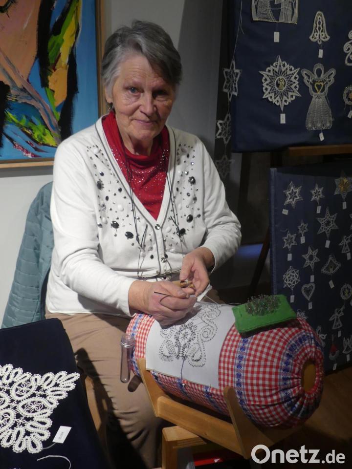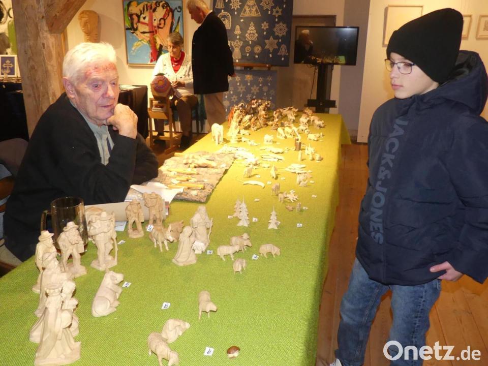 Nicht fehlen durfte der Besuch von Sankt Nikolaus mit Begleitern. Bei seinem längeren Rundgang geizte das Trio nicht mit Gaben an die Kinder. Stark frequentiert waren die warmen Stuben des Hauses. Bei Kaffee, Kuchen, Wein oder Bier ließ sich am Kachelofen angenehm plaudern. Im ersten Stock, wo im Kultursaal noch die Ausstellung „meiletta“ mit Malerei, Skulptur und Grafik des Oberpfälzer Künstlers Leo Schötz zu sehen ist, fanden ein Krippenschnitzer, eine Klöpplerin und eine Anbieterin von Schmuckwaren reges Interesse.