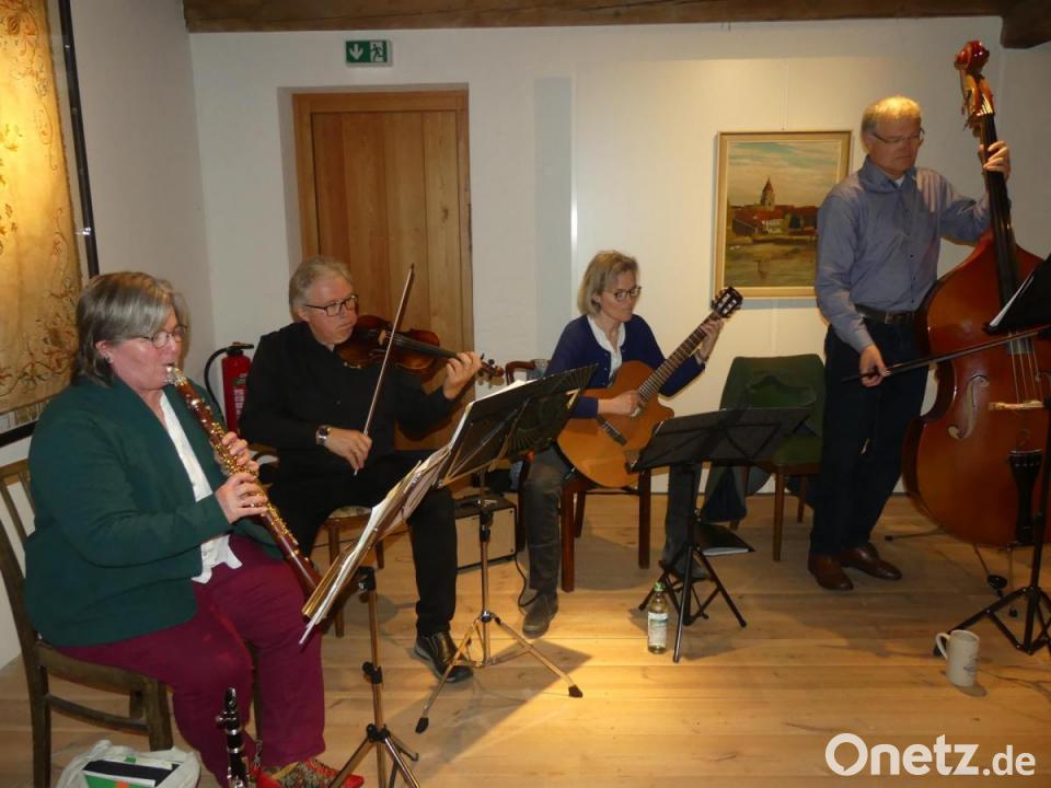 Dem Dialektgenuss beim Taubnschuster gab das Quartett "Schleifband" mit Barbara und Klemens Dötsch, Johanna Rubenbauer und Georg Bayerl mit Stückln wie "Haberländer Galopp", "Schuhmacherwalzer" oder "Schäine Wirtin vo da Hou" eine besondere Note. Karlheinz Keck bescheinigte ihm einen "schönen Sound". Das, was Bäumler als "alten Kas" ankündigte, waren meistens Geschichten aus dem Leben, beobachtet oder erdacht, stets jedoch pointiert und spritzig vorgetragen. Das Sextett zeigte unverwechselbare Perlen heimatlicher Dichtkunst. Spontane Heiterkeit bewirkte nicht nur die Freude des Bauern, der nach der Geburt des vierten Kindes, eines Schwarzen, freudig ausrief: "Endlich a Bou, und a g'sunde Foarb hout er ah!" Ein andermal gab es Unstimmigkeiten zwischen Mann und Frau. Der Diskurs der beiden über Sauberkeit endete mit der Erkenntnis des Mannes: "Nach zwoa Stundn im Bad bin i verschrumpelt gwen, etza g'fall i meiner Alt'n."