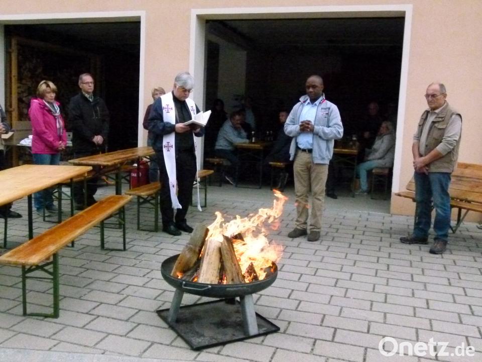 Eine kleine aber feine Jubiläumsfeier zum zehnjährigen Bestehen ihres Heimes beging die Kolpingfamilie. Witterungsbedingt zog es Mitglieder und Gäste in die geräumige Gerätehalle. Symbolcharakter hatte eine Feuerschale vor dem Heim, die an Sonnwendfeuer vergangener Jahrzehnte erinnerte. Denn lange vorbei sind die Zeiten, als vom Zimmermannsplatz aus "Prozessionen" auf den Galgen führten und im Scheine hoher Flammen Johannisfeiern zu Sommernachtsfesten wurden.