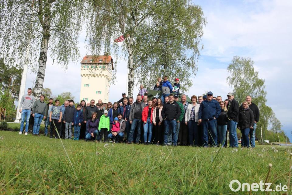 Bundesforstangestellter Alexander Hölzl verstand es, den Teilnehmern die Geschichte des Truppenübungsplatzes Grafenwöhr lebendig darzustellen. Besonders beeindruckend waren seine Weitläufigkeit und die unberührte Natur, die dort anzutreffen ist. Dem Besuch des Haager Friedhofs und der Kirchenruine in Pappenberg folgte die Besichtigung der Kirche in Hopfenohe. Dass ganze Dorfgemeinschaften ihre Heimat wegen der Erweiterung des Truppenübungsplatzes verlassen mussten, stimmte den einen oder anderen nachdenklich. Weiter ging es zum Netzaberg. Hier erstaunte vor allem die Geschwindigkeit, mit der eine ganze Stadt aus dem Boden gestampft wurde. Angekommen am Wasserturm und Aufmarschplatz, fanden die Eschenfeldener diese Location geeignet für ein Gruppenfoto. Bevor sie über die „Housing Area“ Vilseck den Übungsplatz nach vier Stunden dann Richtung Pruihausen zum gemeinsamen Abendessen verließen, besuchten sie noch den Bleidornturm auf dem Schwarzenberg. Er markiert den höchstgelegenen Punkt im Lager.