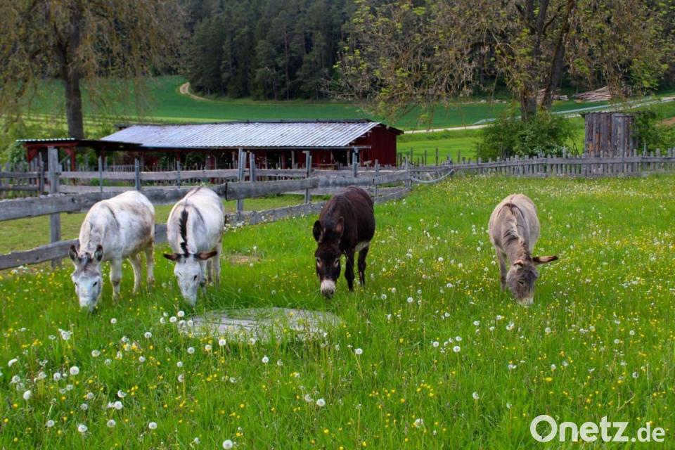 Angeleitet von Elisabeth Pirner erfährt man allerlei Wissenswertes. Zum Beispiel brauchen Esel sehr viel Bewegung. "Damit sie nicht zu viel Fett ansetzen und dadurch krank werden." Die Besucher dürfen die Tiere füttern und striegeln, bevor sie gemeinsam losziehen.