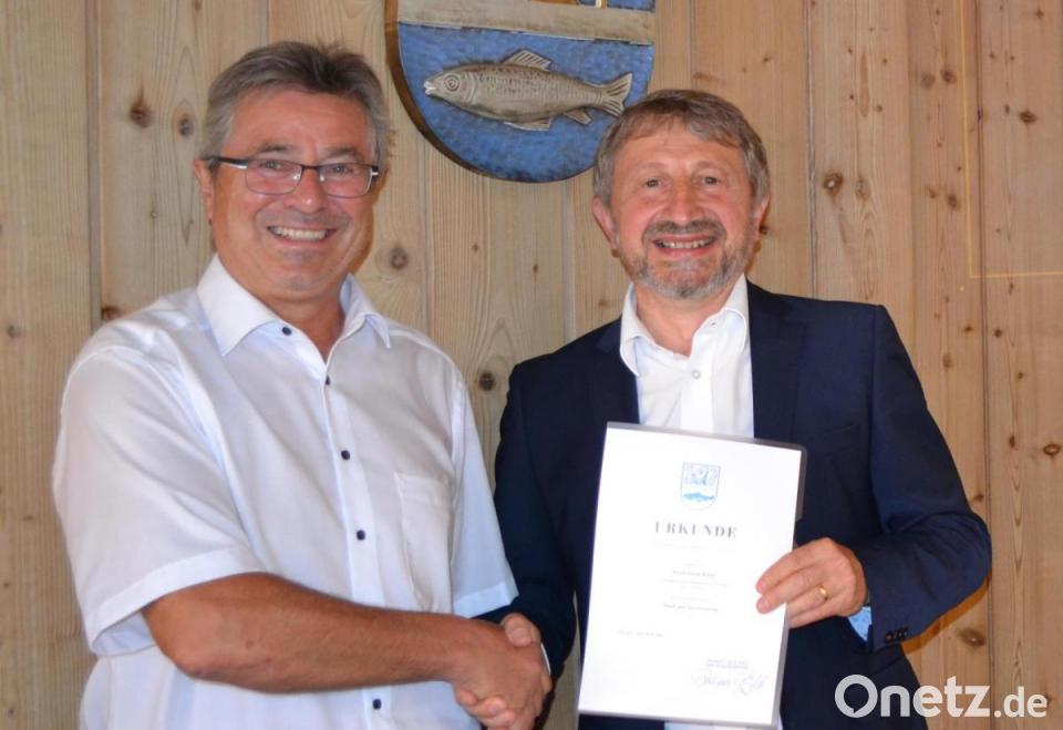 Seit seiner Einstellung am 1. November 1987 als Kämmerer und Geschäftsleiter in Eslarn, „brenne das Feuer für Eslarn“ noch immer genau so intensiv, so Gäbl. Seine Ortsverbundenheit sowie seine guten menschlichen Eigenschaften habe er sich bis heute erhalten und Einschätzungen von damals decken sich bis heute mit seinen Werten. Als Standesbeamter und Kenner von verschiedenen Jubiläumsbezeichnungen wäre seine Dienstzeit heute mit einem „40-jährigen Ehejubiläum“, also mit der „Rubinhochzeit“ zu vergleichen. Als Dank und Anerkennung überreichte der Bürgermeister dem sichtlich gerührten geschäftsleitenden Beamten seine Jubiläumsurkunde. Würfl darf sich zusätzlich über zwei Tage Dienstbefreiung freuen.