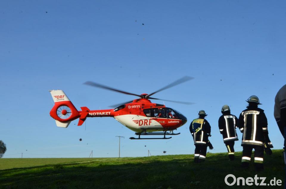 Erst einige Meter weiter blieb der Bulldog zwischen zwei Bäumen stehen. Die herbeigerufenen BRK-Rettungsteams kümmerten sich um den Verletzten, der schließlich nach der Stabilisierung mit dem Rettungshubschrauber "Christoph 80" ins Klinikum Weiden geflogen wurde. Die Ehefrau stand unter Schock.
