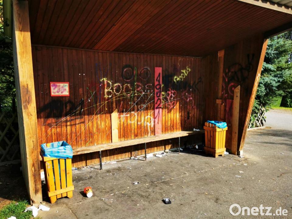 Abfall und Sachbeschädigung an Bushaltestelle in Eslarn