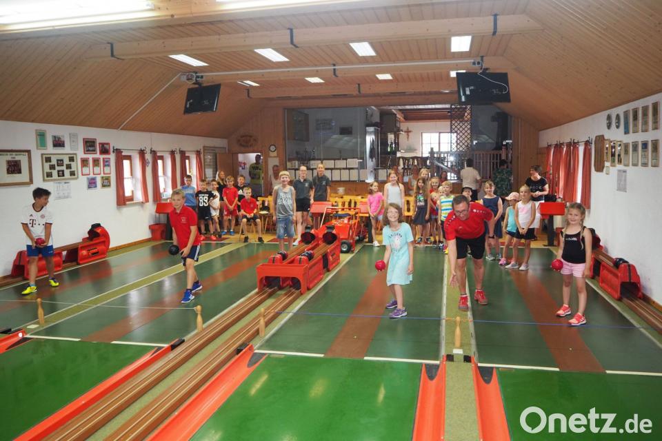 (gz) In der gut temperierten Kegelbahn des Kegelclubs "Eintracht" blieben die Kinder von der enormen Nachmittagshitze verschont und erhielten Einblicke in den Kegelsport. Ein bewährtes Kegelteam um Sport- und Jugendwart Thomas Hacker bot im Sportzentrum Spaß und Wettkampfstimmung. "Den Kindern und Jugendlichen wurden ein paar Kniffe gezeigt, um die Kugel richtig in der Gasse zu positionieren" sagt Hacker. Beim Kegelseminar lernten die Mädchen und Buben im Alter von 6 bis 14 Jahren die Präzisionssportart näher kennen. Die Kugel sollte gerollt und nicht wie beim Kugelstoßen geworfen werden. Die vollautomatische Kegelstellmaschine gewährleistete zwar einen zügigen Ablauf, aber bei diesem Andrang war auch hier Geduld gefragt. Nach einem einstündigen Einspielen mit der kleinen Kugel wechselte das Trainerteam in den Wettkampfmodus. Dabei durfte jedes der 35 Kinder, aufgeteilt in vier Altersgruppen, jeweils zehn Schub in die Vollen spielen. Die drei Erstplatzierten erhielten als Preise Basket- und Fußbälle und die Zweiten und Dritten jeder Gruppe einen Essensgutschein, der im TSV-Sportheim in den nächsten Tagen eingelöst werden kann. Die Besten bei den bis 6-Jährigen waren Lisa-Marie, Anna, Felix, bei den 8- und 9-Jährigen Lena, Julia, Amelie, bei den 10- und 11-Jährigen Patrick, Benedikt, Luca und bei den 12- und 14-Jährigen Raphael, Alina und Jana. Als Belohnung für die Teilnahme gab es Getränke, Häppchen und Süßigkeiten. Nach fast vier Stunden verließen die Kinder begeistert die Kegelbahn. "Wir hoffen, dass sich der ein oder andere an den Kegeltag erinnern und an der Sportart gefallen finden wird", meinte Hacker.