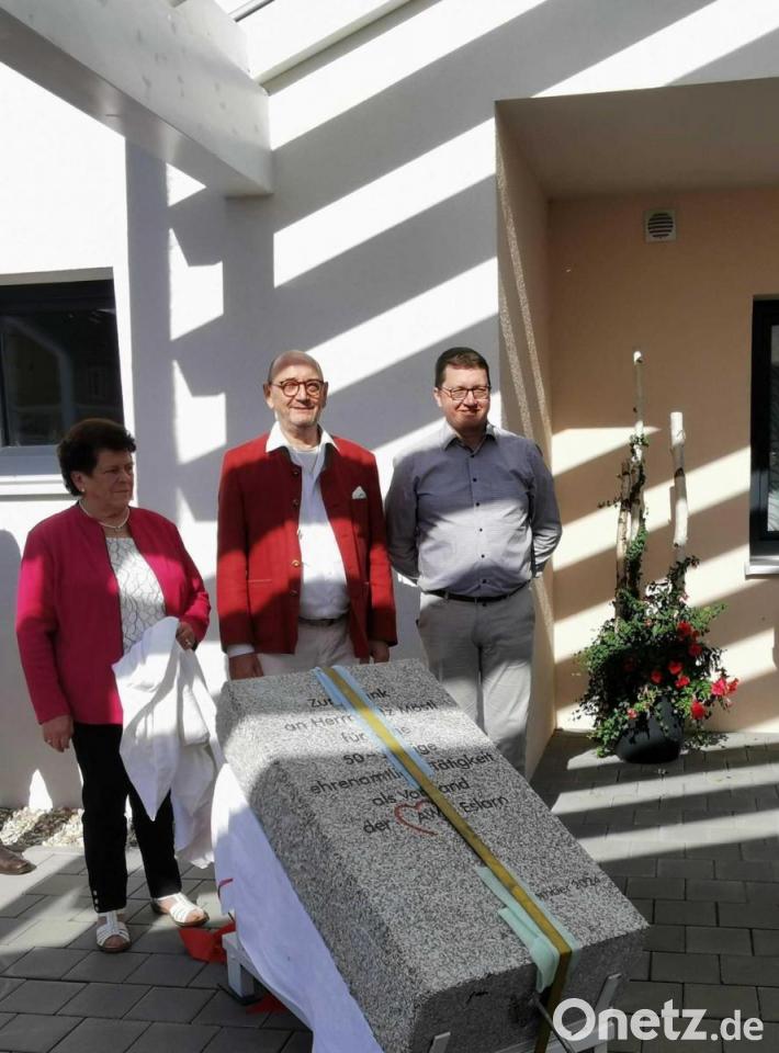 2018 entstand in Eslarn das AWO-Gebäude mit Tagespfleg, Küche und Büros. "Es wurde eine Begegnungstätte, ein offenes Haus für Jung und Alt geschaffen", blickte Hierold zurück. "Der Gedenkstein soll auch die kommenden Generationen an dein Lebenswerk erinnern", sagte Hierold zu Möstl.