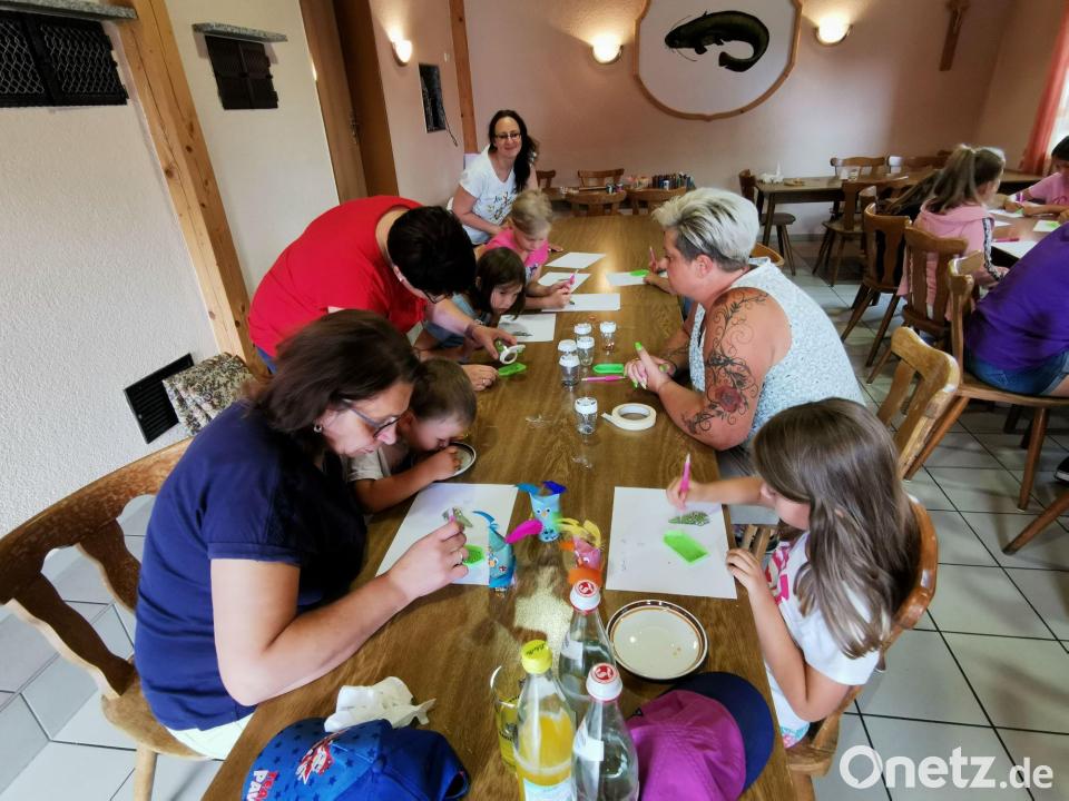 Die Mädchen und Jungen verteilten sich auf mehrere Stationen und hatten bei den sportlichen und kreativen Angeboten mächtig Spaß. Das Bastelteam um Carmen Floß, Mandy Stephan und Silke Singer hatte im Fischerhäusl pfiffige Ideen und bastelte mit den Kinder aus Klopapierrollen sehenswerte Eulen. Kreativ waren auch die Schlüsselanhänger aus kleinen Hartsteinen. Unterdessen ging auf der Minigolfanlage bei herrlichem Sommerwetter regelrecht die Post ab.