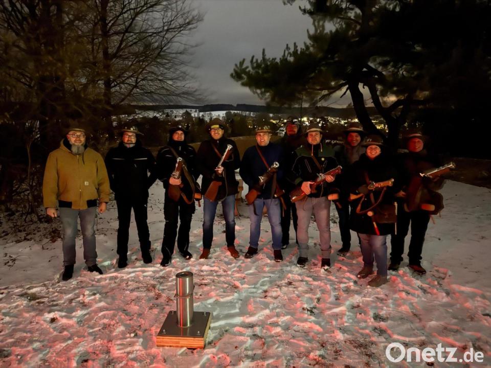 Die Böllerschützen der Schützengesellschaft „Hubertus“ haben das neue Jahr in Eslarn mit beeindruckenden „Feuerblumen“ begrüßt. Am Jahrestag trafen sich am historischen Schlossberg gegen Abend trotz schlechter Witterung zehn Böllerschützen mit ihren rund elf Kilogramm schweren Schaft- und Handböllern. Böllermeister Max Härtl übergab das Kommando an den erfahrenen Schussmeister Thomas Ziegler.