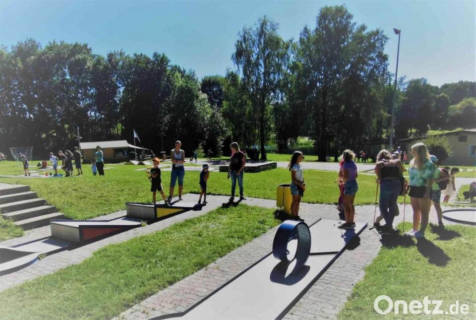 Ein rühriges Frauenteam sorgte in und vor der Fischerhütte für Getränke und Kuchen. Dagegen versuchte der Nachwuchs auf der Minigolfanlage, im Wettstreit mit Eltern oder Freunden mit wenigen Schlägen zum Ziel zu gelangen. Geduld war bei der Ausgabe eines freien Minigolfschlägers gefragt.