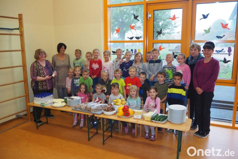 Die Vorschulkinder teilten sich in drei Gruppen, bereiteten Butterbrote mit Schnittlauch vor, andere schnippelten den Käse in Würfel und stellten mit Weintrauben viele Obstspieße her. Ein bunter Teller mit verschiedenen Gemüsearten stand bei der dritten Gruppe auf dem Kochplan. "Alle Produkte kommen aus der Region" stellte Lukas-Fuchs fest. Zum Abschluss erhielt der Nachwuchs kleine Fläschchen mit Sahne und alle durften durch Schütteln frische Butter herstellen. Zudem wurden verschiedene Milchmixgetränke und Kräuterquark gefertigt, die mit Butter- und Käsebroten und frischen Käse-Obst-Spießen auf die Tische kamen. Im Namen des Kindergartens und des Teams dankte Ramona Zangl für den aufschlussreichen Vormittag. Derartige Aktionen mit der gesunden Brotzeit sollte man laut Pfarrer Erwin Bauer zum Wohle der Kinder desöfteren anbieten.
