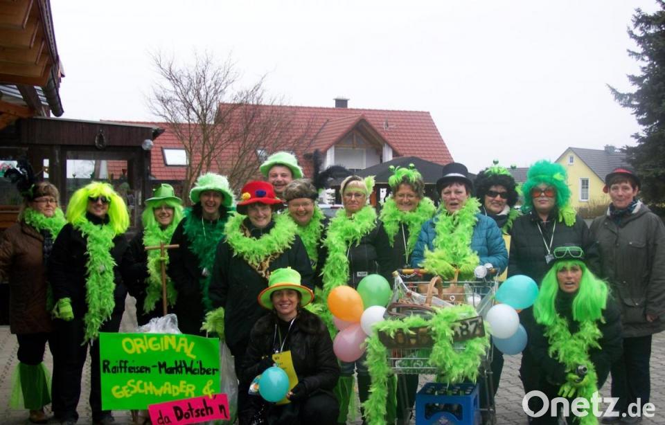 Seit mittlerweile 15 Jahren machen sich die Marktweiber an Fasching auf den Weg durch Eslarn. Gebremst wurde das ausgelassene Feiern der 19 Damen bisher lediglich durch Corona. Gemeinsam mit ihrem Bodyguard "d´Dotsch´n" bereichern die Raiffeisen-Marktweiber in normalen Zeiten die Faschingsszene. Der Name der Frauenvereinigung, die beim "As- und Agrom" ein fester Bestandteil der "Islouer Fosnd" ist, wurde vom ehemaligen Raiffeisenmarkt abgeleitet. Die Idee zur Gründung hatten die Marktdamen Uli und Heidi mit ihrer Freundin Doris. Leider verlor die lustige Truppe 2021 nach der Schließung des Raiffeisenmarktes ihre Zentrale – und Corona zwang die Frauen zum Stillhalten.