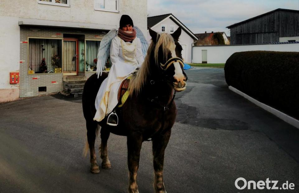 In Eslarn machte ein Engel auf einem Pferd auf sich aufmerksam. Im Sattel saß die 14-jährige Sonja Hantzsch im schneeweißen Gewand und mit zwei großen Engelsflügeln. Ihre Mutter Ines Hantzsch zog einen Bollerwagen mit 100 Schokonikoläusen hinter sich her. Jedes Kind durfte sich mit Abstand einen aus dem Wägelchen nehmen. An den ersten beiden Adventsonntagen war der Engel mit Pferd "Lina" in den östlichen und nördlichen Ortsteilen unterwegs. "Am dritten und vierten Adventsonntag wählen wir eine andere Strecke, so dass wir fast in jeder Straße erschienen sind", erläutert Ines Hantzsch. Normalerweise stehen auch Seniorenheime und Kindertagesstätten auf dem Plan, doch die Corona-Pandemie ließ Besuche und direkte Kontakte nicht zu. Die Schoko-Nikoläuse finanziert Ines Hantzsch aus der eigenen Tasche.
