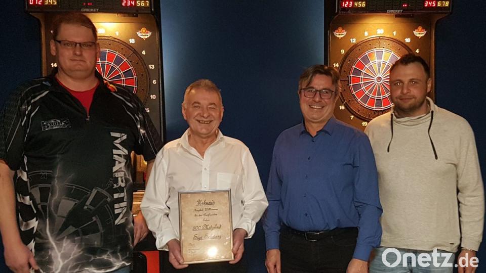 "Ich verfolge im Onetz ständig von meiner Wahlheimat Weiden aus das gesellige Angebot und den sportlichen Werdegang der Dartfreunde Eslarn", stellte Sigi Schwarz fest. Den Eslarner zog es 1970 von seinem geliebten Eslarn in die kreisfreie Stadt Weiden, ohne den Kontakt nach Eslarn zu verlieren. Bei einem Besuch einer Veranstaltung der Dartfreunde am "Heustodl Isling" kam er mit Dartvorsitzenden Martin Bauer und Stellvertreter Thomas Bösl ins Gespräch und war spontan zum Beitritt bereit. "Du bist damit das 300. Mitglied", überraschten die beiden Vereinschefs das Neumitglied. Eine ausgehändigte Urkunde soll Sigi Schwarz auch nach Jahren an diese außergewöhnliche Ehrung am legendären Heustodl erinnern.