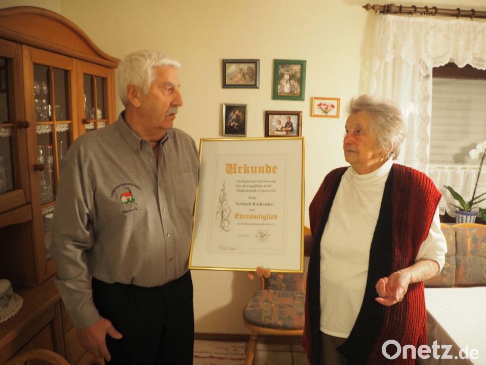 Alles Liebe und Gute, vor allem Gesundheit und noch viele Jahre voller Freude wünschten am Montag zum 90. die drei Kinder mit Familie, Verwandte, Vertreter der Gemeinde und Kirche sowie Vereinsabordnungen. "Die Party beginnt erst morgen" informierte Katharina Grötsch die überraschenden Besucher am Vortrag. Im Namen der Siedlergemeinschaft überbrachte kommissarischer Vorsitzender Erich Brunner dem langjährigen Mitglied als Dank und Anerkennung bereits einen Tag vor der Geburtstagsfeier die Ernennungsurkunde zum Ehrenmitglied. Der Chefsiedler wies darauf hin, dass laut Satzung zudem alle 90-Jährigen automatisch von den Beitragsgebühren befreit sind. Die Jubilarin hält der SG seit 19 Jahren die Treue, zeigte Interesse an angebotenen Vorträgen und am Vereinsgeschehen.